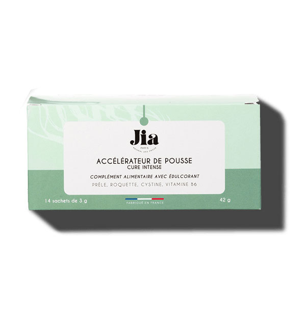 L’ Accélérateur de pousse de Jia Paris est un complément alimentaire cheveux sous forme de poudre à mélanger à un verre d’eau ou un à de la nourriture. Il est composé d’un complexe de plantes, d’acides aminés et de vitamines qui feront des merveilles sur vos cheveux.