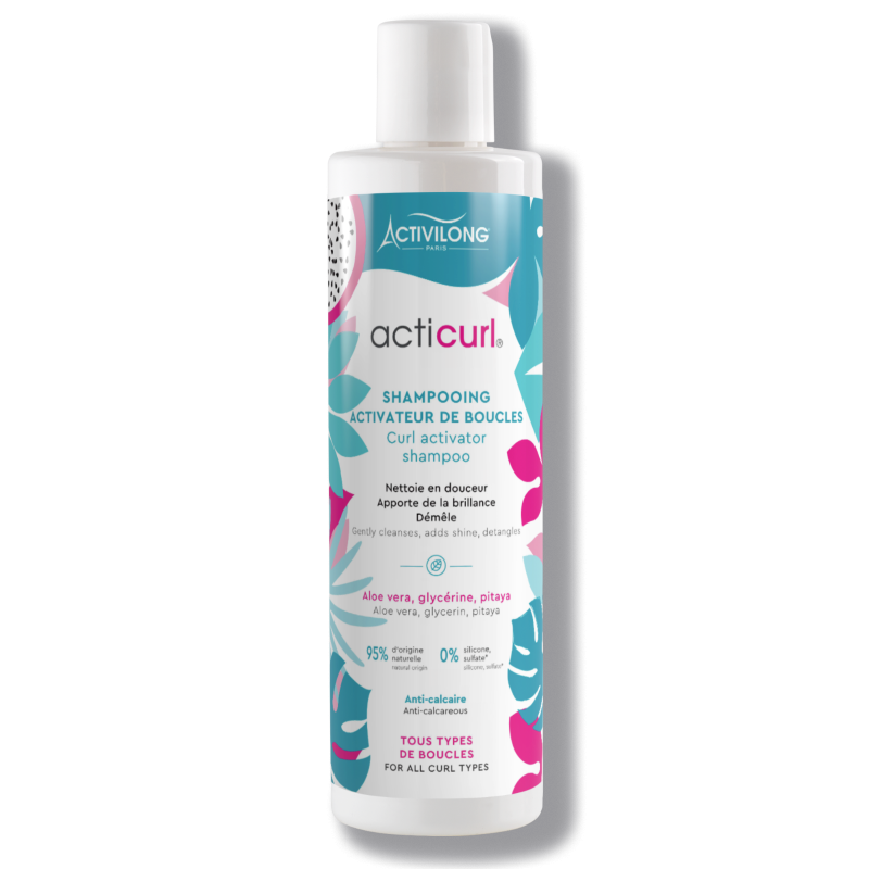 Le shampooing ACTICURL est enrichi à l’ALOE VERA BIO et à la Glycérine végétale.  Il nourrit, conditionne et adoucit les chevelures naturellement bouclées ou ondulées.