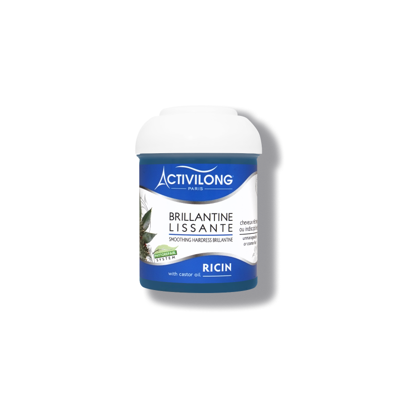 La Brillantine Lissante à l’huile de Ricin lisse la chevelure tout en lui apportant brillance et protection.