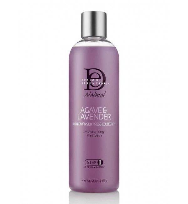 AGAVE LAVENDER SHAMPOOING HYDRATANT : Shampoing hydratant sans sulfates pour nettoyer profondeur les cheveux et le cuir chevelu et pour démêler en douceur.  Enrichi en phytokératine, en Agave et en huile de Lavande, le shampoing Design Essential Agave Lavender Moisturizing Bath revitalise les cheveux tout en contrôlant les frisottis et les mèches rebelles pour dévoiler une chevelure lisse et soyeuse, plus facile à coiffer. Le shampoing hydratant sans sulfates  Design Essentials apaise, stimule le cuir chevelu et active la pousse; il hydrate en profondeur les cheveux secs, leur redonne force, lisse les cuticules, assouplit les cheveux et facilite le coiffage.