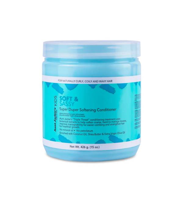 AJ KIDS SOFT AND SASSY SOFTENING CONDITIONER 15OZ: Il agit rapidement pour aider à adoucir et à desserrer les textures grossières et serrées.