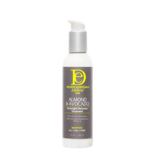 Design Essentials® Almond & Avocado Overnight Recovery Treatment est un soin de nuit hautement hydratant, à base d’huiles naturelles. Il régénère l’humidité et nourrit le cheveu pendant le sommeil.