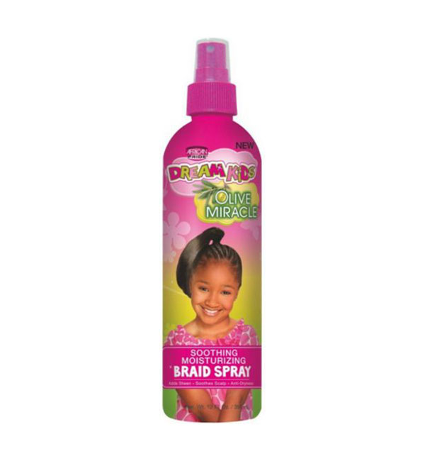 Formulé pour les cheveux et le cuir chevelu délicats des enfants, Dream Kids Braid Spray est idéal pour une utilisation immédiatement après avoir créé des styles de tresse, de torsion et de verrouillage