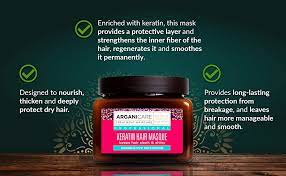 - FORMULE CIBLÉE : Ce masque cheveux Arganicare est un masque nutritif à base de kératine, d’huile d’argan, de panthénol (vitamine B5) et de vitamine E., des actifs intéressants pour les cheveux et l’entretien du lissage brésilien.