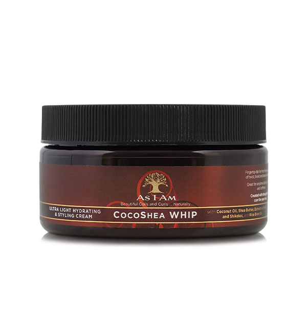 AS I AM COCOSHEA WHIP : Crème hydratante et coiffante ultra-légère Belles bobines et boucles… Naturellement avec de l’huile de noix de coco, du beurre de karité, des extraits d’Amla et de Shikakai et de l’huile de son de riz Trempage du bout des doigts pour une libération sans frisottis des ensembles Twist, Braid et Bantu-Knot Idéal pour Lubrification, brillance et douceur à tout moment créé avec un soin attentionné pour vos cheveux Leaping Bunny Certified Cruelty Free