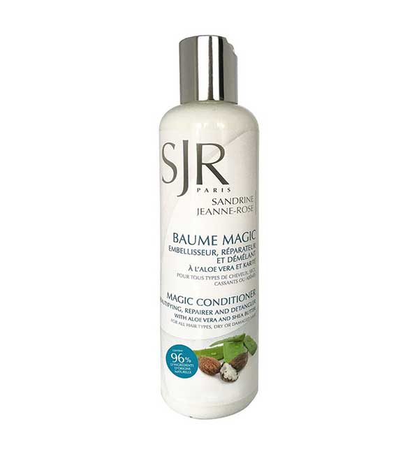Le baume magic embellisseur et nourrissant SJR Paris est constitué à 96% d’ingrédients d’origine naturelle, et ne contient aucun perturbateur endocrinien, ni silicone, paraben ou phénoxyéthanol. Il convient à tous les types de cheveux, qu’ils soient épais ou fins.