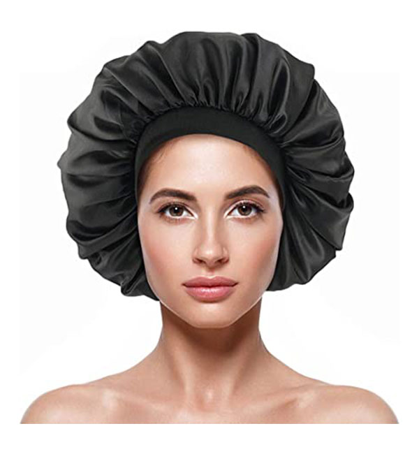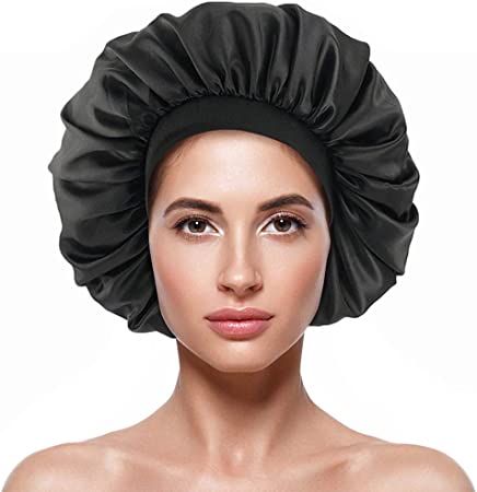BONNET SATIN XXL: Bonnet de nuit en satin large le diamètre important convient aux chevelures très épaisses, volumineuses.