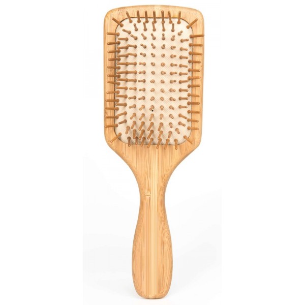 Cette brosse à cheveux a une sensation naturelle et luxueuse et fonctionne exactement comme les brosses à cheveux conventionnelles. Les poils et la poignée sont en bambou pur et la base du coussin est en caoutchouc naturel.