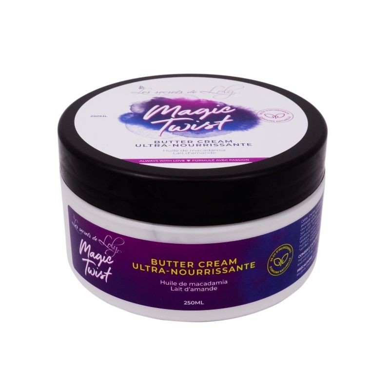Cette Butter Cream magic twist coiffant est riche en huiles et donc ultra-nourrissante. Elle est idéale pour les coiffures des petits, mais aussi des grands ! Elle permet de définir toutes les coiffures : vanilles, twist out, braid out, finger coils.