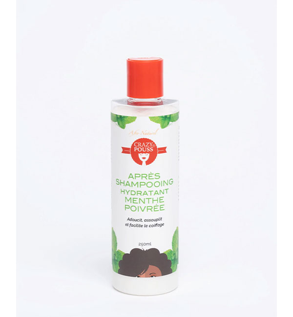 L’APRES-SHAMPOING MENTHE POIVREE de la marque CRAZY POUSS offre un soin doux et reposant. Il apporte un véritable soulagement aux cuirs chevelus sensibles ou irrités. De plus, il offre une hydratation et une brillance incomparables ainsi qu’une sensation de fraîcheur subtil.