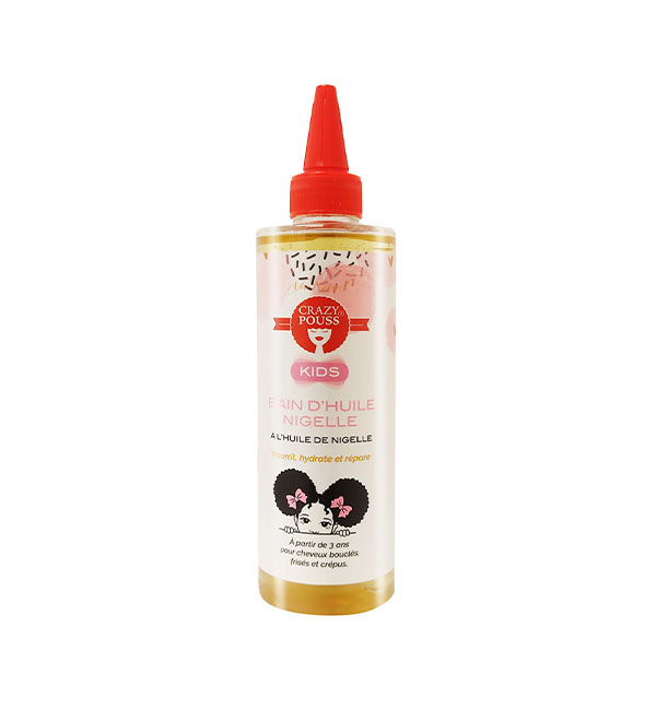 Le KIDS BAIN D’HUILE NIGELLE  de la marque Crazy Pouss a été formulé pour nourrir et fortifier les cheveux bouclés, frisés et crépus de vos enfants. Il peut être utilisé à partir de 3 ans. Il favorise aussi la pousse des cheveux, apaise le cuir chevelu et agit comme un produit antipelliculaire efficace.