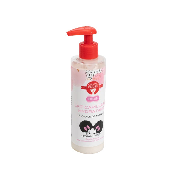 Lait capillaire hydratant à l’huile de nigelle crazy pouss afro naturel redonne de la souplesse et brillance aux cheveux bouclésfrisés et crépus de vos enfants dès l’âge de 3 ans.
