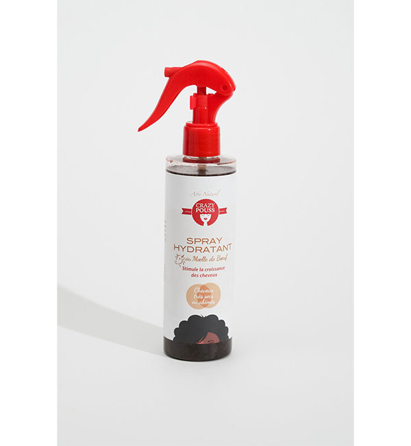 Le Spray hydratant cheveux à la moelle de boeuf de Crazy Pouss stimule la croissance des cheveux très secs ou abîmés.