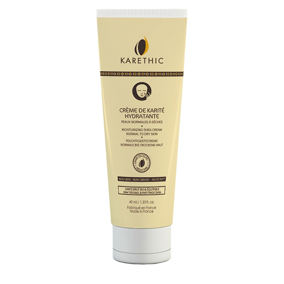La Crème de karité hydratante au Karité pur Karethic est spécifiquement formulée pour répondre aux besoins des peaux normales à sèches, ternes et déshydratées.