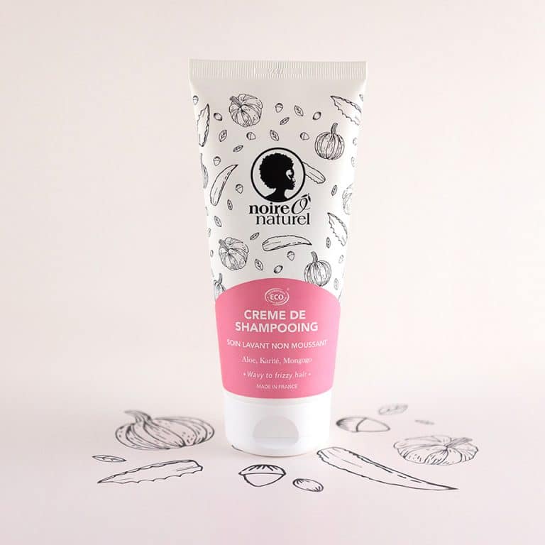 Shampooing Crème sans sulfates composé d’Alœ vera ,Sésame, karité BIO, Mongogo et beurre de mangue. L’Innovation NoireôNaturel : plus qu’un démêlant sans ALS ni SLS, un co-wash crémeux non moussant pour un soin lavant qui assouplit, définit les boucles.