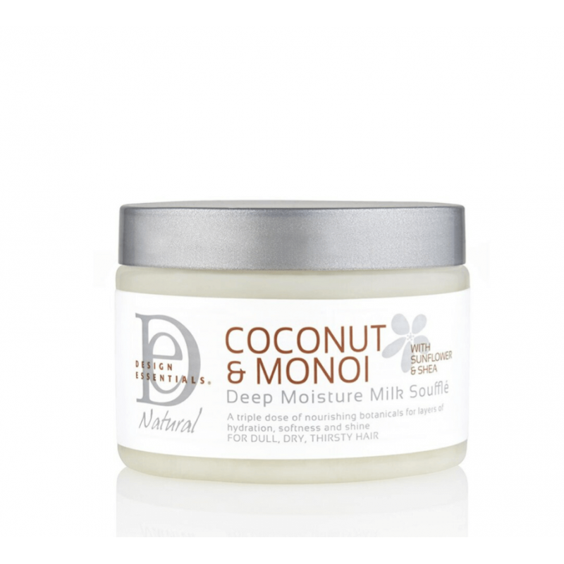 La crème soufflé hydratante COCONUT & MONOÏ de la marque Design Essentials est une crème coiffante nourrissante et hydratante qui donne des boucles légères et sans frisottis. Cette crème coiffante apportera de la douceur et redéfinira intensément vos boucles grâce à ses propriétés réparatrices.