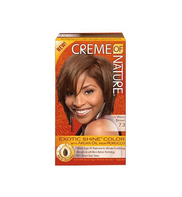 CREME OF NATURE GEL ARGAN MEDIUM WARM BROWN 7.3 est une coloration permanente pour cheveux conçue pour offrir une couleur brun chaud moyen naturelle et une finition brillante. Sa formule enrichie en huile d’argan nourrit et protège les cheveux. La couleur est également résistante à la décoloration et durable.