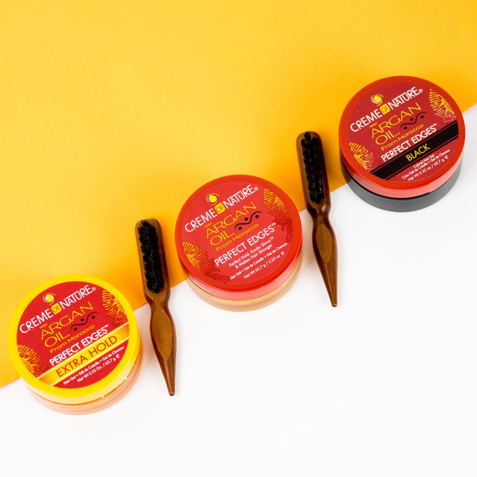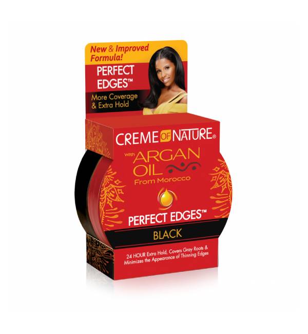 CON ORGAN OIL PERFECT EDGES BLACK : Notre nouveau gel capillaire noir Perfect Edges  amélioré , infusé d’huile d’argan, offre une tenue supplémentaire de 24 heures avec hydratation et brillance tout en couvrant les racines grises et en minimisant l’apparence des bords clairsemés. Sans accumulation ni résidu, cette formule est parfaite pour couvrir les racines grises et minimiser l’apparence des bords clairsemés tout en créant des styles élégants et lisses.