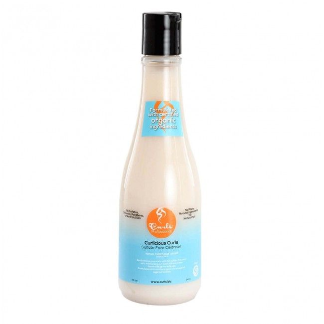 Curls Curlicious Curls Cleansing Cream est un shampoing sans sulfate, sans silicone à la texture crémeuse.  Il nettoie en douceur sans décaper ni irriter ni dessécher les cheveux bouclés, frisés ou crépus les plus secs et fragiles.  Cette crème-nettoyante à la formule non moussante est idéale pour cheveux ultra-abîmés, cassants et secs. Sa formule, enrichie en protéines de soie, permet de démêler et d’apporter une bonne dose de soin aux cheveux.  Curls Curlicious Sulfate Free Cleanser Cream assure une véritable réparation et une hydratation en profondeur des cheveux et contribue à redéfinir les boucles, même très fines.