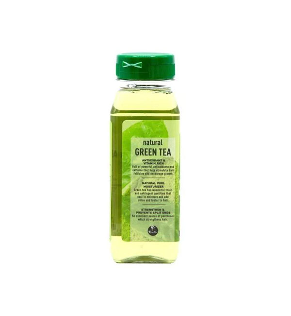 CURLS GREEN TEA HAIR RINSE : Plein d’antioxydants puissants et de caféine qui aident à stimuler les follicules pileux et à favoriser la croissance. Emballé avec de la vitamine C naturelle, il protège vos cheveux et votre cuir chevelu des dommages causés par le soleil. Le thé vert a de merveilleuses qualités toniques et astringentes qui scellent l’humidité et ajoutent de la brillance et de l’éclat aux cheveux. Une excellente source de panthénol qui renforce les cheveux. Il contient également un acide aminé unique appelé théanine. Cet acide aminé, associé au panthénol, renforce la tige du cheveu et aide à prévenir les pointes fourchues.