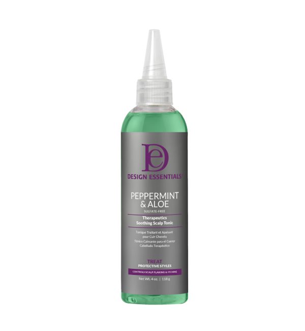 DESIGN ESSENTIAL PEPPERMINT ALOE TONIC, tonique apaisant pour le cuir chevelu à la menthe poivrée et à l’aloès, apporte un pouvoir purifiant et détoxifiant. Cette formule aide à éliminer les particules et les excès d’huile qui contribuent à l’irritation de la peau et du cuir chevelu. La menthe poivrée naturelle et l’aloès de ce traitement agissent ensemble pour calmer, apaiser et stimuler le cuir chevelu tout en procurant un soulagement instantané des démangeaisons. Il détoxifie le cuir chevelu, laissant le cuir chevelu propre et soulage les démangeaisons et les irritations du cuir chevelu.