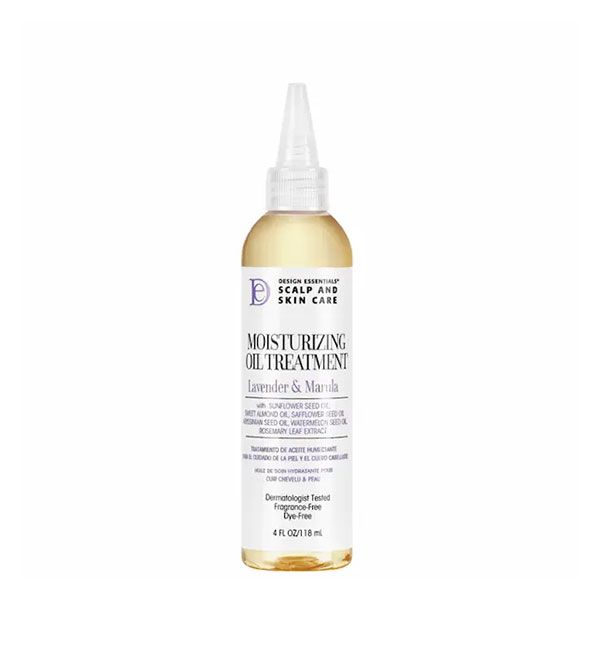 L’huile de soin hydratante de la marque Design Essentials est un traitement qui hydrate instantanément et nourrit le cuir chevelu tout en aidant à favoriser la croissance des cheveux. C’est une formule légère qui hydrate sans produire d’accumulation grasse. L’huile de marula est riche en antioxydants qui aident à hydrater le cuir chevelu, mais ne bouchent pas les pores. Ce traitement à l’huile hydratante contient de la lavande, reconnue pour améliorer la circulation sanguine, stimuler la croissance des cheveux et apaiser la peau endommagée.