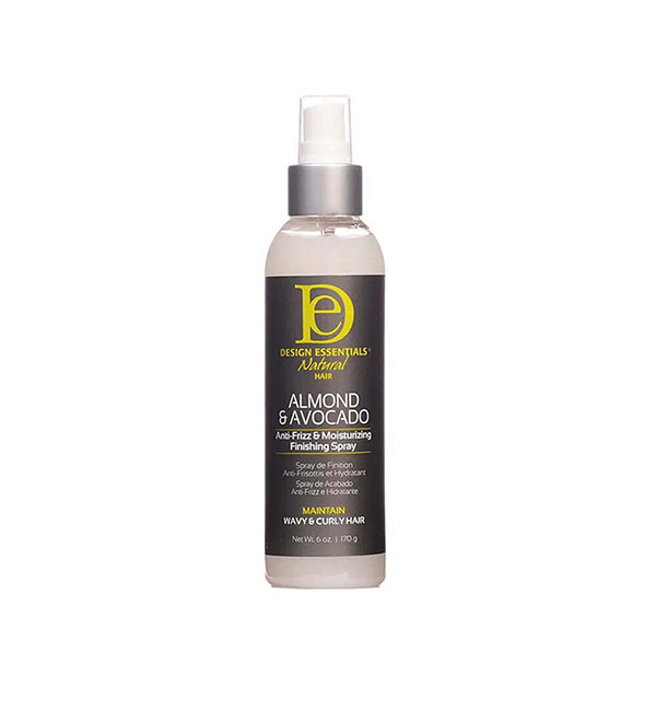 Design Essentials SPRAY FINITION Almond Avocado est un spray capillaire sans rinçage conçu pour hydrater et protéger les cheveux des frisottis et des UV. Il est formulé avec des huiles d’amande et d’avocat, riches en vitamines et en acides gras essentiels qui aident à nourrir et à renforcer les cheveux. Ce spray est également exempt de sulfates, de parabènes, de silicones, d’huile minérale et de gluten.