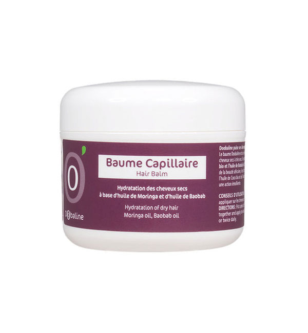 DOBALINE BAUME CAPILLAIRE : Ce baume est un soin nourrissant et adoucissant développé spécifiquement pour des cheveux secs à très secs. Il est composé de 2 huiles précieuses ancestrales : l’huile de Moringa bio du Sénégal et l’huile de Baobab bio du Mali.