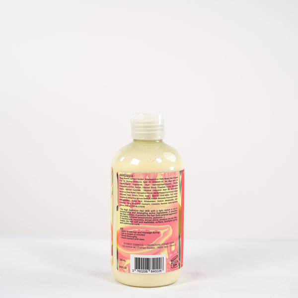 Notre lait capillaire est sans parabène, sans silicone et sans huile minérale. Il a une texture légère et est riche en actifs hydratants.