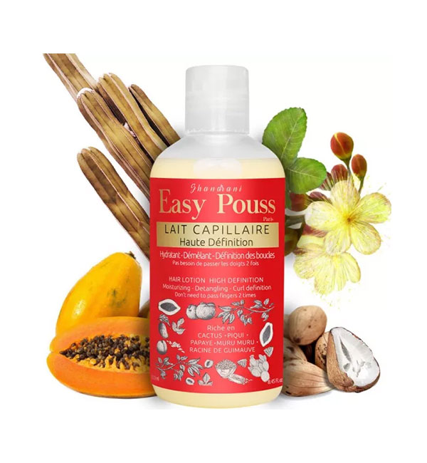 EASY POUSS LAIT CAPILLAIRE: Le lait capillaire à la texture légère et riche en actifs hydratants, démêle efficacement vos cheveux et lisse leur cuticule.