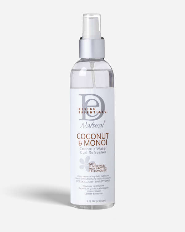 Le Rafraîchisseur de boucles Coconut & Monoi à l’eau de Coco Water Curl Refresher revitalise les boucles grâce à son complexe Triple hydratation au Monoï, Tournesol, Camomille et protéines de lait. En usage quotidien, les boucles se réhydratent et domptent les frisotis.