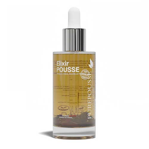 L’Élixir Pousse est un concentré puissant d‘huiles végétales, d’huiles essentielles et de plantes 🌱, spécialement formulé pour stimuler la pousse des cheveux afro et renforcer leur santé. Grâce à l’huile essentielle de menthe poivrée, cet élixir stimule la micro-circulation du cuir chevelu, favorisant ainsi la croissance des cheveux crépus, frisés ou bouclés. Il combat également la casse des cheveux afro et aide à résoudre les problèmes de démangeaisons du cuir chevelu. Cet élixir nourrit en profondeur, et protège la fibre capillaire, tout en apportant douceur, brillance et souplesse aux cheveux afro. Il est idéal pour les personnes souffrant d’alopécie ou de tempes dégarnies, et particulièrement adapté aux cheveux secs, fragiles ou abîmés.