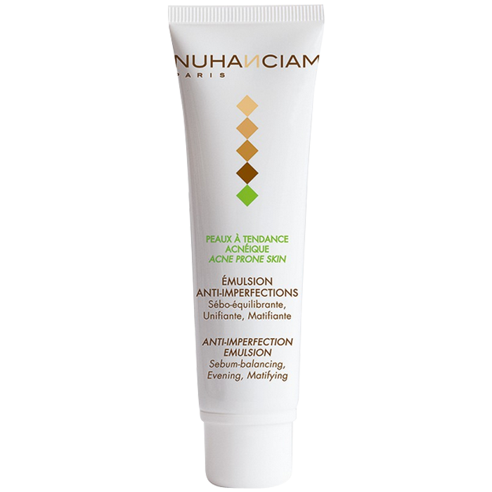 L’émulsion anti-imperfections de la marque Nuhanciam pénètre rapidement, laissant la peau douce, apaisante et parfaitement mate toute la journée. Sébo-régulatrice, mate et uniforme qui assure la transformation globale des peaux à problèmes : imperfections, pores, brillance, rougeurs, taches, teint irrégulier.