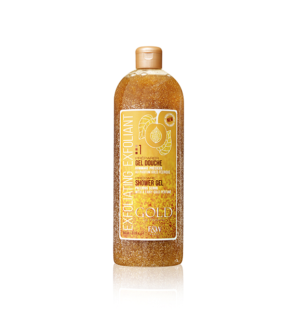 GOLD GEL DOUCHE GOMMANT : Ce gel douche exfoliant à la mousse onctueuse nettoie, gomme et parfume intensément votre peau.