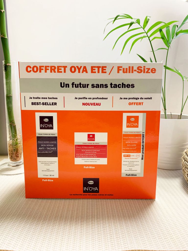 Adapté à tous les types de peau et idéal pour la saison, il contient:  Mon Sérum « Anti-Taches » MEL’OYA®, Mon Gel « Nettoyant Exfoliant Gommant » CLEAN’OYA® EXTRA et Mon Fluide Solaire SPF 50 SUN’OYA® OFFERT