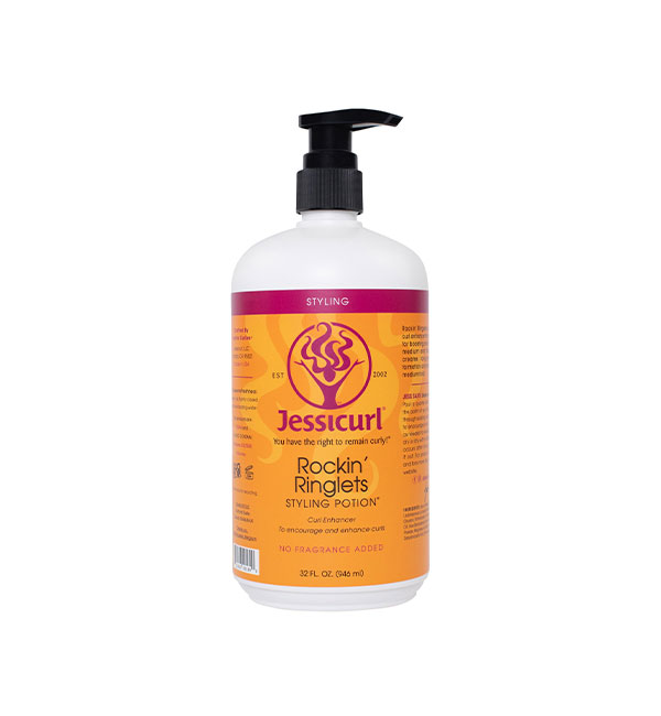 JESSICURL ROCKIN’ RINGLETS 32OZ : La potion coiffante Rockin’ Ringlets est un puissant rehausseur de boucles qui stimulera les vagues en boucles et fera vibrer vos boucles !