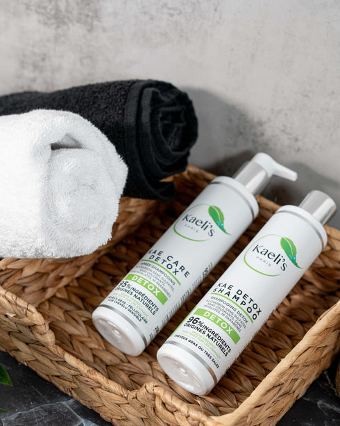 Le soin détox par excellence. Le KAE DETOX CONDITIONER est un traitement à base d’actifs de charbon, il permet d’assouplir et de revitaliser le cheveu en profondeur après le shampoing Kae Poo Detox. Ces propriétés détoxifiantes permettent de prolonger l’assainissement du cheveu. Très hydratant, il permet le démêlage du cheveu et son conditionnement. Ce soin est sans parabènes, sans sulfates et sans colorants. Très doux pour vos cheveux.