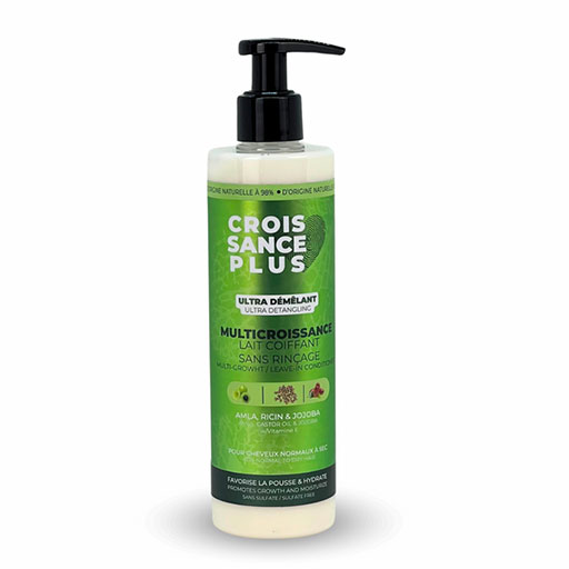 Le Lait Coiffant Multicroissance Croissance Plus est conçu pour hydrater et définir les boucles tout en facilitant le coiffage. Riche en amla, ricin et jojoba, il offre une hydratation longue durée, tout en protégeant la fibre capillaire. Ce lait convient parfaitement aux cheveux texturés de type 3 et 4, offrant une définition sans frisottis et un fini brillant et doux.