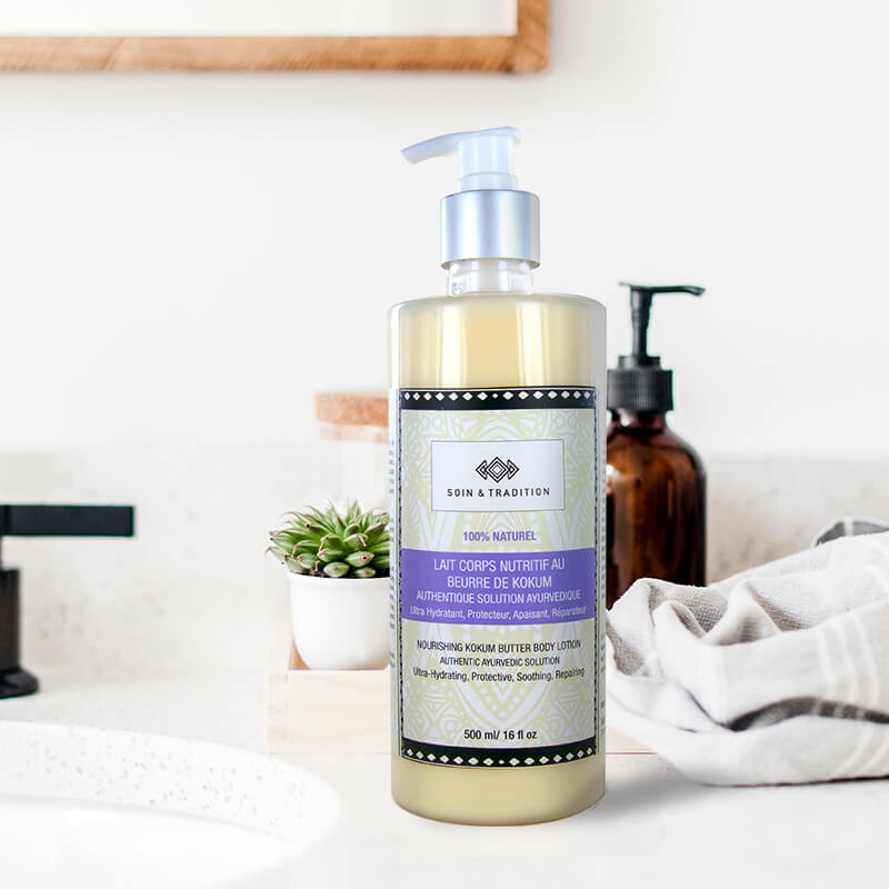 Lait corporel nourrissant au beurre de Kokum : super hydratant et nourrissant Véritable soin du corps, ce lait a une texture riche et onctueuse qui adoucit et adoucit la peau. Même sur les peaux les plus déshydratées, il nourrit instantanément et hydrate durablement sans laisser de sensation grasse. Formulé selon les anciens principes ayurvédiques de Sandhaniya, conçu pour réparer et régénérer les tissus, il associe de puissants nutriments, des actifs apaisants et rajeunissants. Enrichi en beurre de Kokum grâce à ses excellentes propriétés régénérantes, le Lait Protecteur Nourrissant Kokum Soin & Tradition contient du beurre, utilisé depuis des générations pour les soins de la peau en Inde pour conférer douceur et élasticité à la peau, protéger et maintenir la jeunesse de l’épiderme . Il est riche en antioxydants, qui peuvent rehausser et maintenir l’éclat du teint. Avec une utilisation régulière, la peau est lisse, douce et le teint éclatant et lumineux