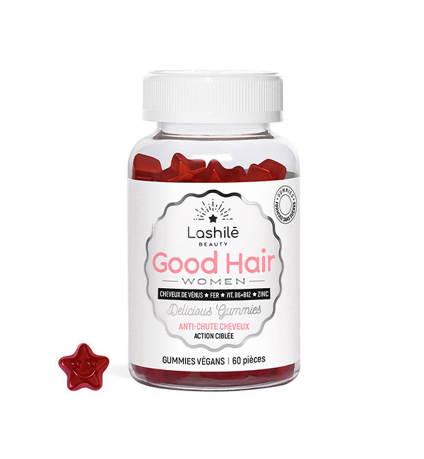 Good Hair Women: Conçu pour prévenir la chute de cheveux chez les femmes. Lashilé Beauty, laboratoire nutricosmétique. Découvrez notre gamme de compléments alimentaires sous formes de gummies pour prendre soin de vous. Des formules cliniquement prouvées, concentrées et équilibrées.
