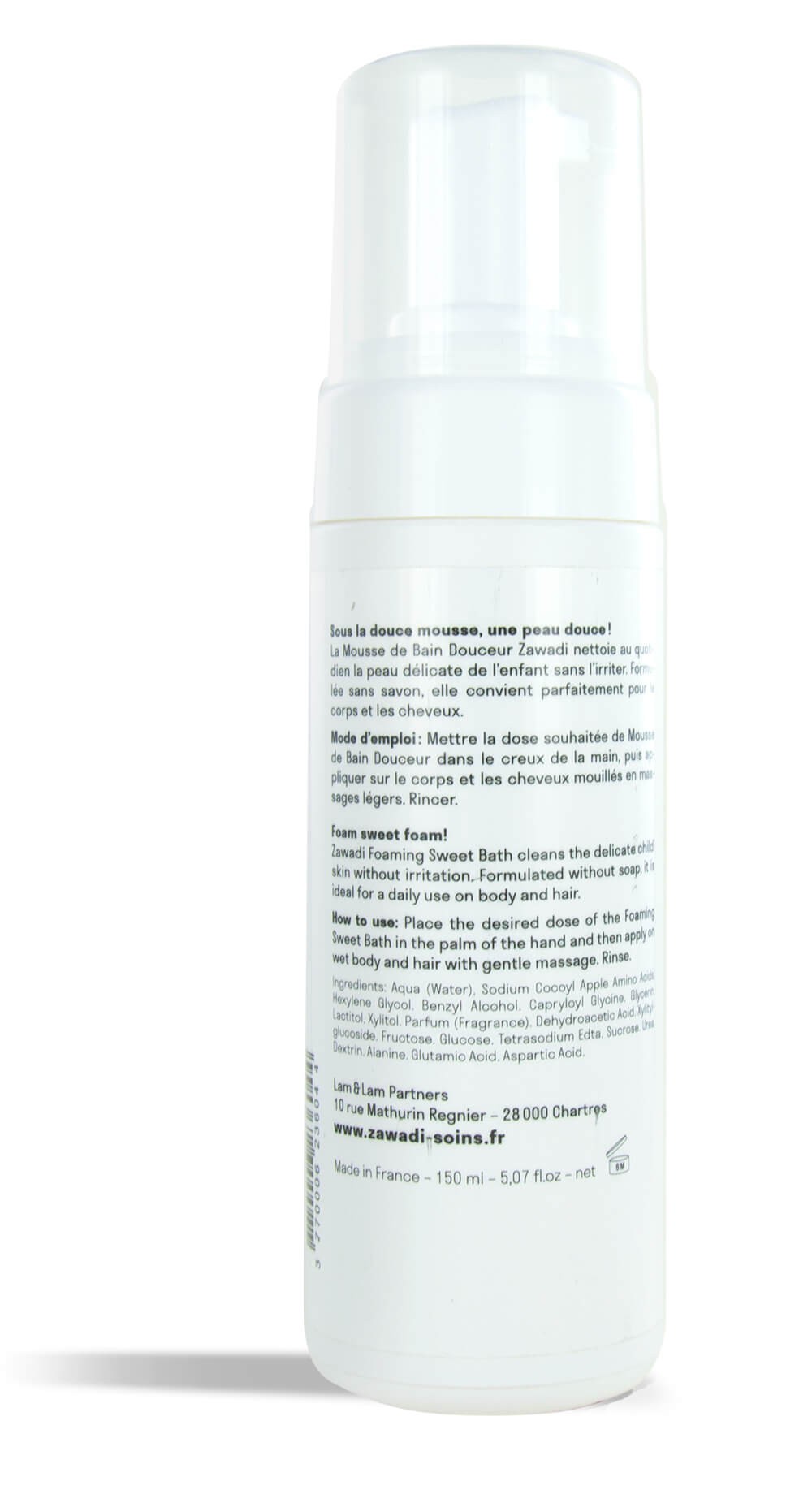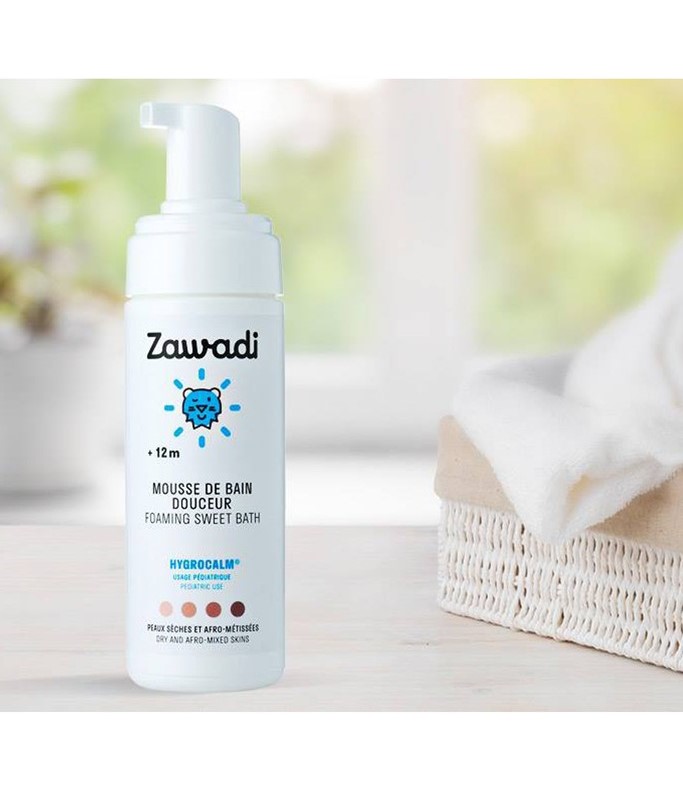 La Mousse de Bain Douceur de zawadi est une mousse de bain lavante et protectrice. Elle nettoie en douceur le corps et les cheveux de votre bébé à partir de 12 mois. Elle est douce pour la peau et n’irrite pas les yeux.