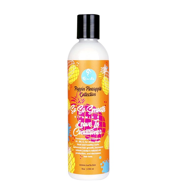Mode d’emploi du POPPIN PINEAPPLE CELL: Appliquez l’après-shampooing sans rinçage So So Smooth Vitamin C sur cheveux fraîchement nettoyés, avant d’appliquer la gelée définissant les boucles So So Def Vitamin C ou sur cheveux secs pour rafraîchir les boucles. Idéal pour les ensembles de rouleaux, de tiges et de torsions.