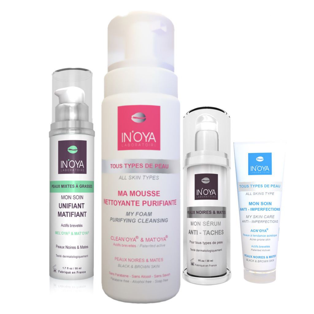 Il contient:  Mon Sérum « anti-taches » MEL’OYA®, Mon Soin « Unifiant Matifiant » MEL’OYA® & MAT’OYA® et Mon Gel « Nettoyant Exfoliant » CLEAN’OYA® EXTRA