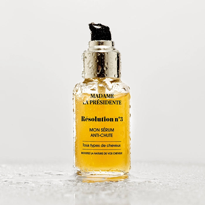 Notre sérum anti-chute pour cheveux Résolution n°3 est une solution pour lutter contre la perte des cheveux. Sa formule unique et concentrée contribue à accélérer la pousse et à ralentir la chute des cheveux. Il ancre le bulbe capillaire, booste la croissance du cheveu, enraye la chute, augmente le volume et la densité. Ce sérum pousse cheveux permet de renforcer la fibre capillaire.