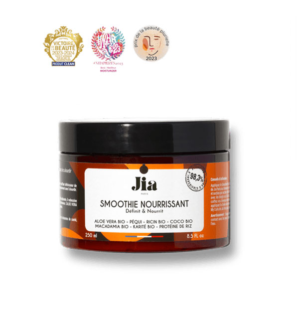 Le Smoothie Nourrissant For My Curls de Jia Paris est un soin coiffant définisseur de boucles. Sa texture aérienne et onctueuse hydrate la boucle intensément sans l’alourdir.