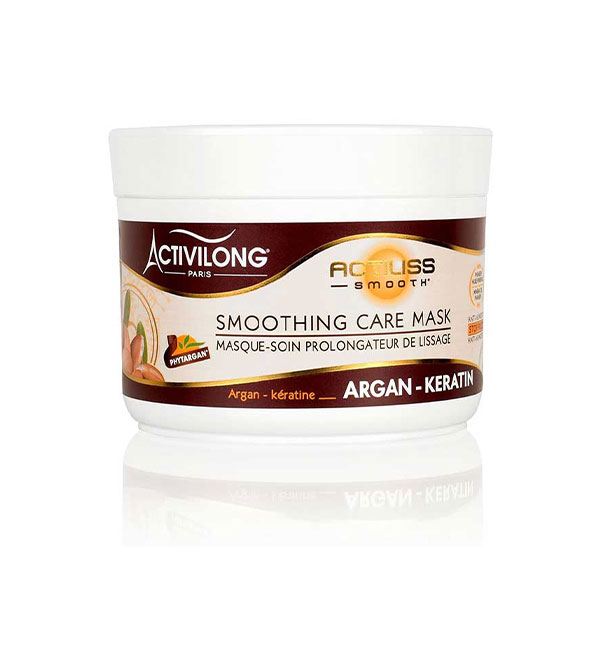 Le masque traitant lissant prolongateur Actiliss d’Activilong démêle, nourrit et prolonge le lissage des cheveux bouclés, crépus ou crépus. Enrichi en argan et en kératine pure, le masque Actiliss possède une texture onctueuse et parfumée très facile à rincer sans alourdir les cheveux. Sa formule nourrit intensément les cheveux et a un effet thermo-protecteur sur les longueurs.