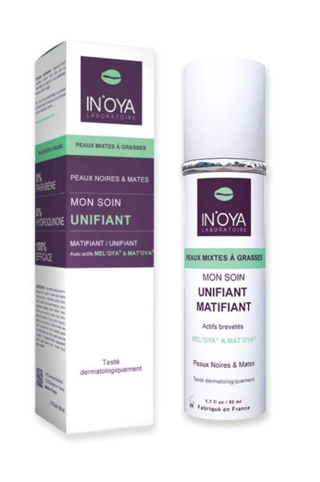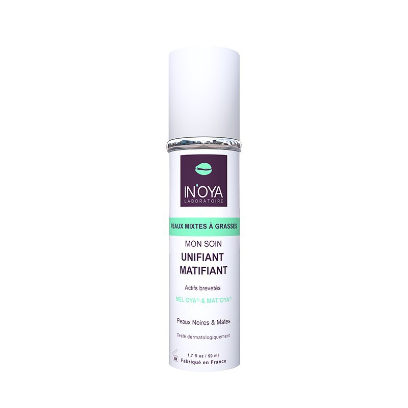 Le Soin Matifiant Unifiant bénéficie de la double technologie brevetée : MEL’OYA® assure l’uniformité du teint grâce à deux enzymes qui agissent sur les peaux mates, métissées et noires. MAT’OYA® exerce un effet matifiant grâce à des ingrédients naturels et biologiquement actifs qui régulent l’excès de sébum de la plante de la Grande Muraille Verte d’Afrique. Il agit tout au long de la journée pour aider à la disparition des taches hyperpigmentées et prévenir l’apparition de nouvelles taches. Jour après jour, le teint devient plus uniforme et plus éclatant. Les pores ne sont pas évidents. Le grain de peau est plus lisse et l’épiderme est affiné. Idéalement, en plus du sérum « anti-taches », il peut également être utilisé en soin de jour, avec ou sans maquillage. Ses petites fonctionnalités supplémentaires ? Il donne une sensation de fraîcheur et un doux parfum de fruit citron goyave. Sa texture fluide et son toucher non gras. Flacon de 50 ml