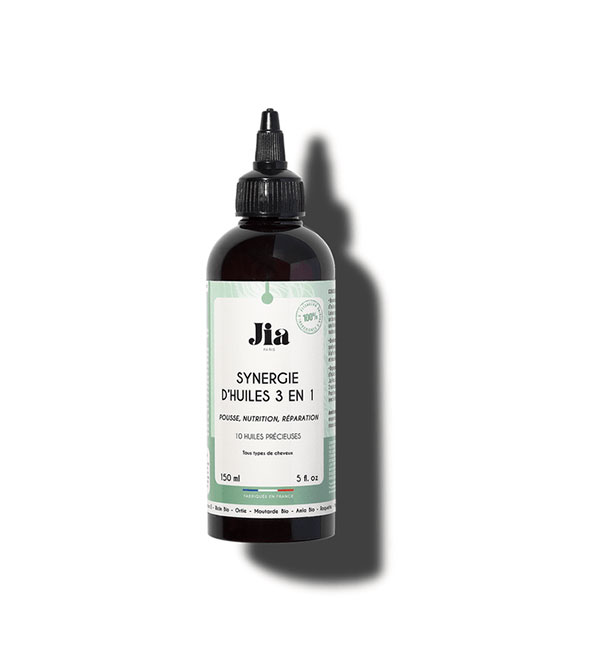 La Synergie d’huiles 3 en 1 Jia Paris est une combinaison de 10 huiles 100% naturelles minutieusement sélectionnées. Elle active la croissance capillaire et limite la chute grâce à ses propriétés stimulantes autant qu’elle fortifie les longueurs grâce à ses propriétés nourrissantes et protectrices.