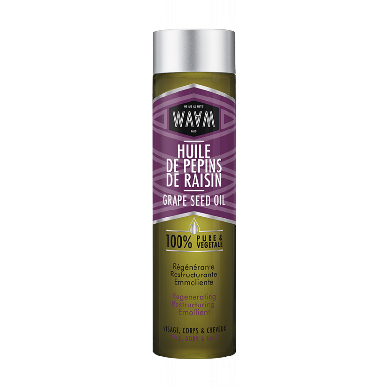 L’huile de Pépins de Raisin pénètre facilement la peau sans laisser de film gras. Elle est idéale pour la nutrition en profondeur des peaux assoiffées et des cheveux fins, secs et cassants.
